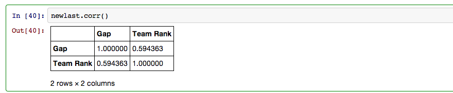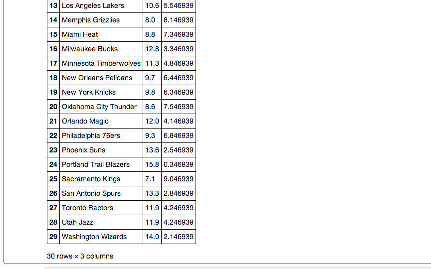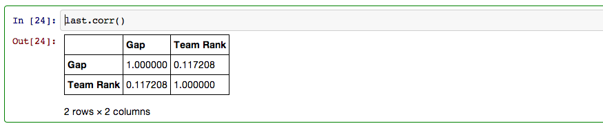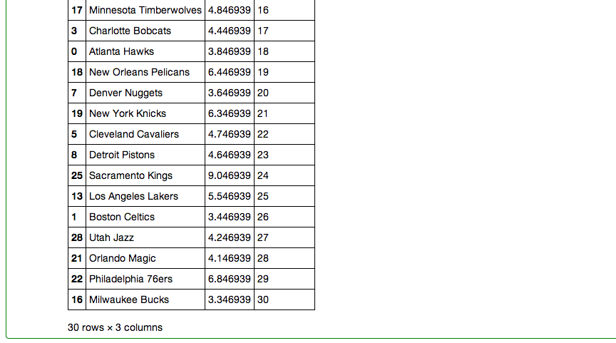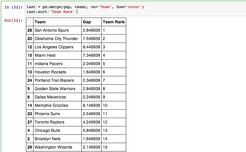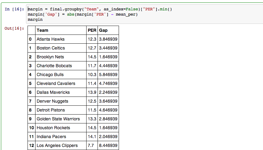 My last step in pandas involved creating a dataframe that included every team, their rank, and their PER gap.